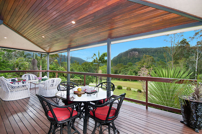 The discreet driveway rises through native vegetation, lush black bamboo and soaring ghost gums, leading to this peacefully private, expansive plateau where two separate residences are accented by mature exotic gardens and large open areas. Both dwellings have been built on prime north north east orientation and enjoy unobstructed sunlight from dawn to dusk. Taking advantage of the sun's direction, the roof has solar panels and a solar boosted hot water system.
