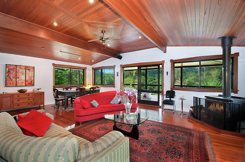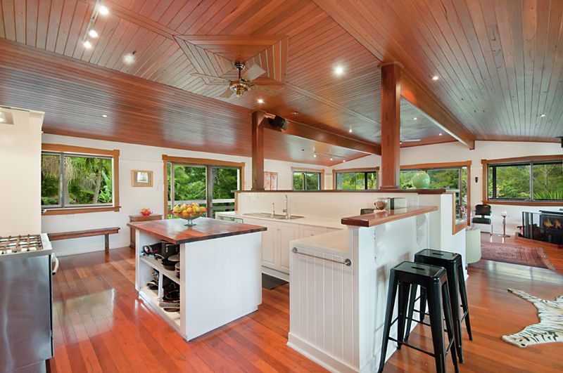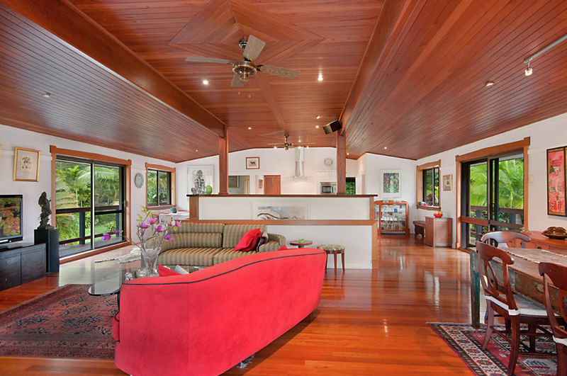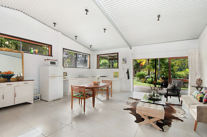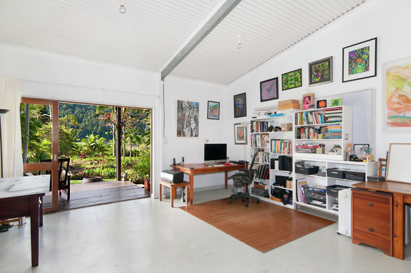 Forty metres from the main house is the artist's residence and art studio. The residence and studio are a large, self-contained, high ceilinged open space with full bath, modern kitchen, wood and ceramic tile floors and six antique silky oak sliding glass doors opening to a covered hardwood deck. This residence would be ideal for extended family, caretaker or as an income producing rental property.