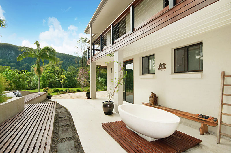 The discreet driveway rises through native vegetation, lush black bamboo and soaring ghost gums, leading to this peacefully private, expansive plateau where...