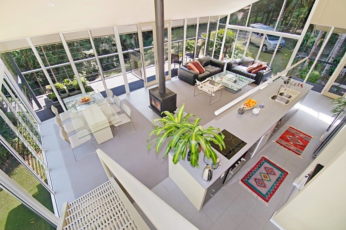 With most of the exterior walls being floor to ceiling glass, including the bathroom, these windows provide an intimate view from the comfort of the home out to the magical surrounding rainforest and its inhabitants.