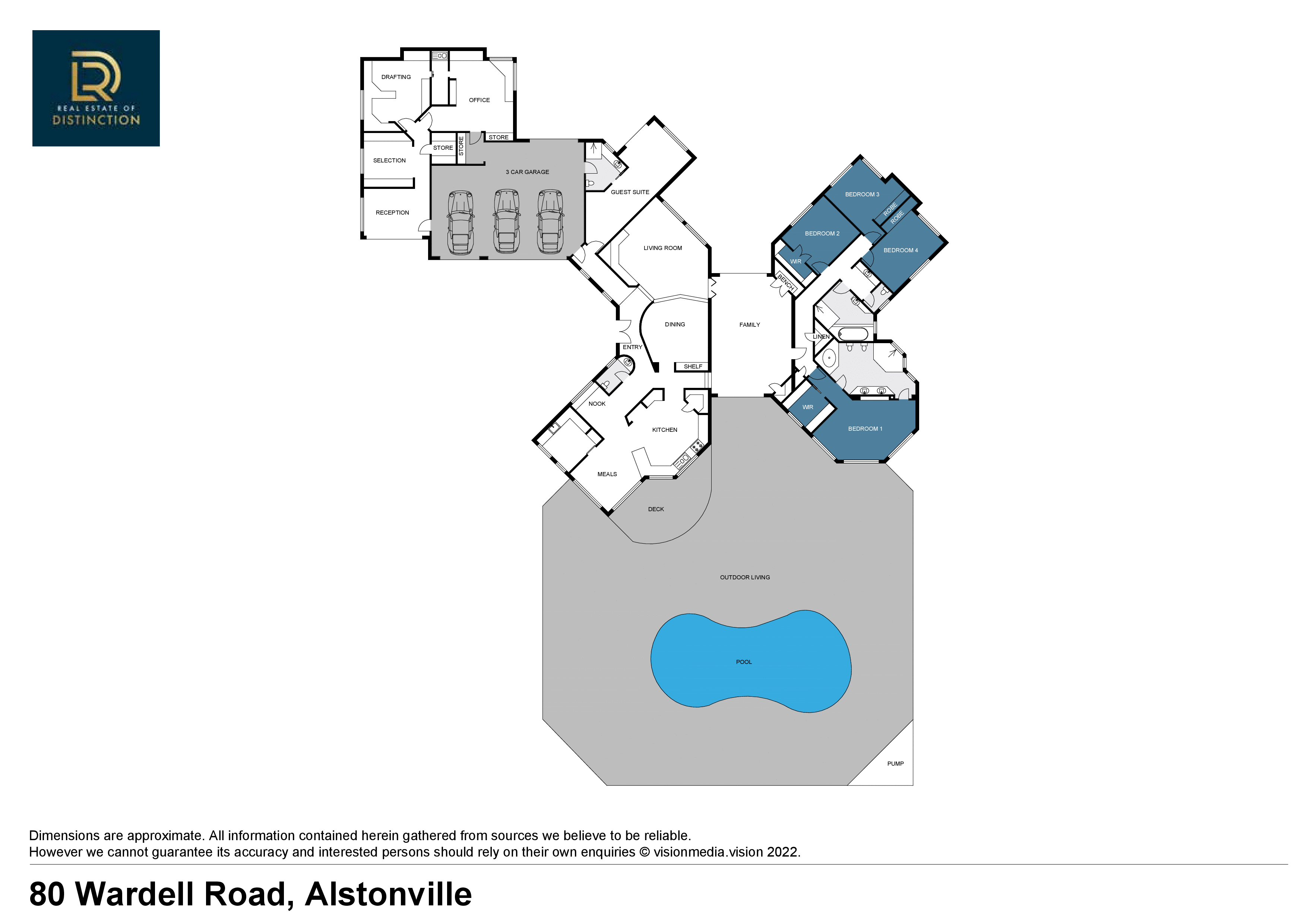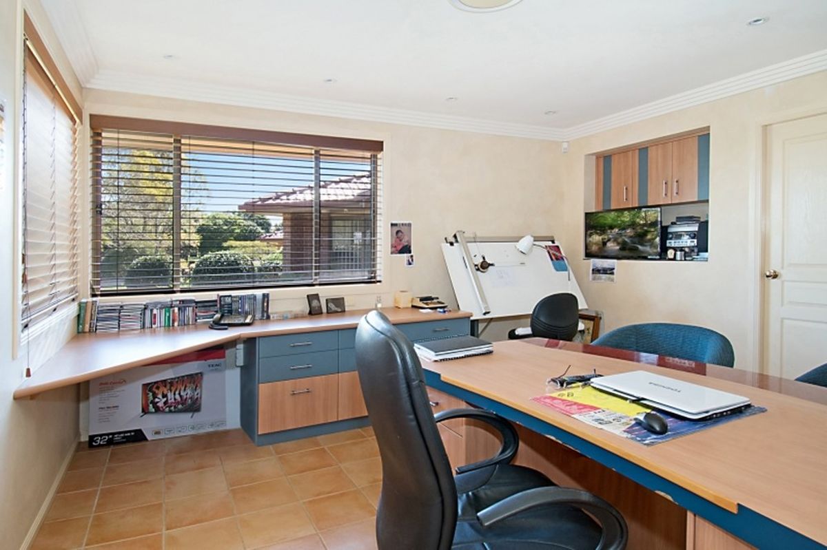 The majestic five-bedroom home boasts three bathrooms and ample space for up to eight vehicles. A separate wing houses guest accommodation with an ensuite, alongside a four-room office area - an ideal setup for a growing business or home office.