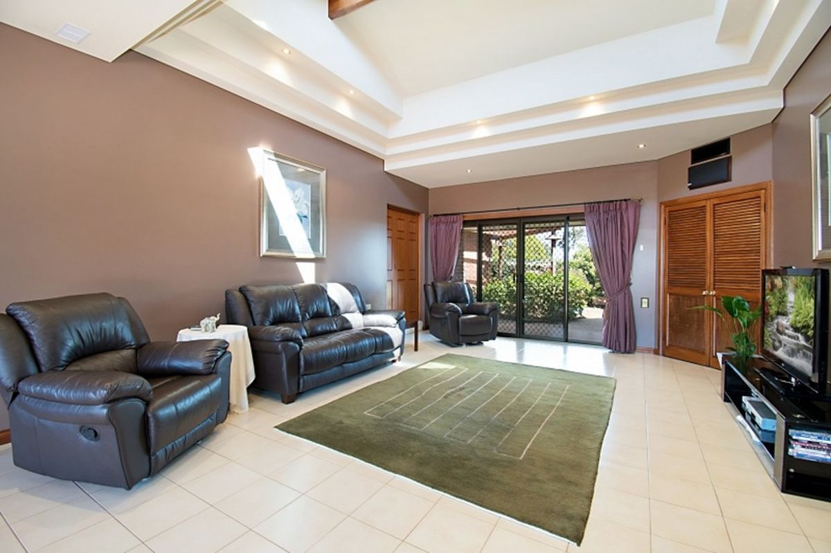 The central living space centres around a cozy fireplace with a classic brick finish, perfect for cooler evenings. After a day of success, retreat to the main bedroom wing, where four spacious bedrooms await - including a master suite with an ensuite and walk-in robe, and a three-way bathroom serving the others.
