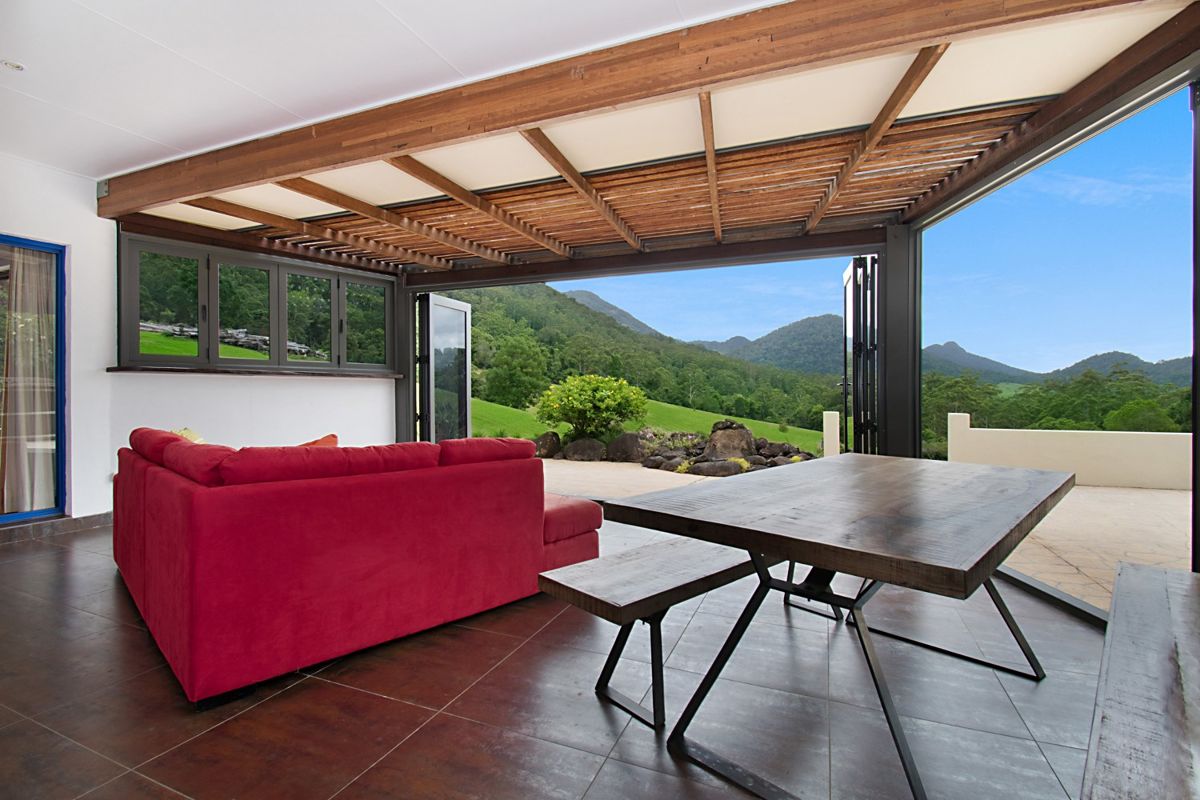 An integrated multi-functional sun room allows enjoyment of the surrounding landscape including uninterrupted views of Mount Warning, Mount Uki and the Two Sisters, while being sheltered from the elements... perfect for al fresco dining, exercise, entertainment or simply curling up with a great film or book.