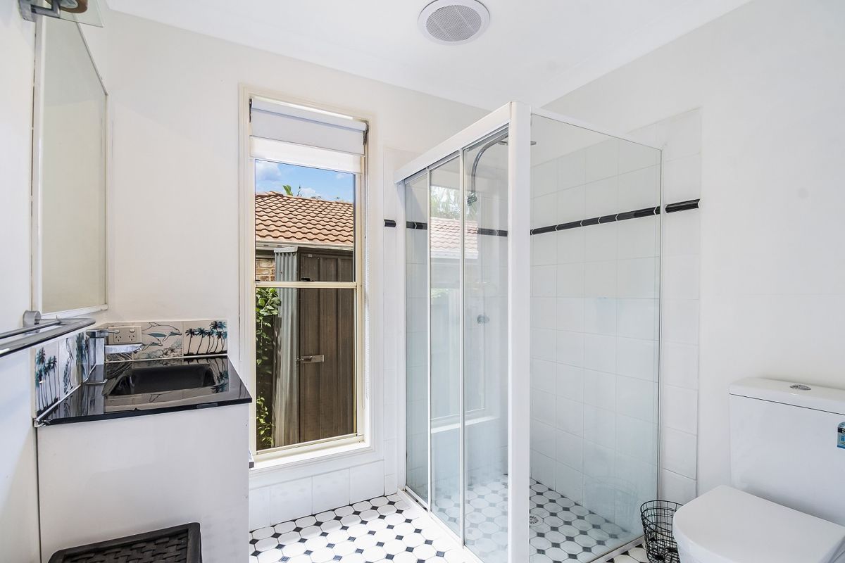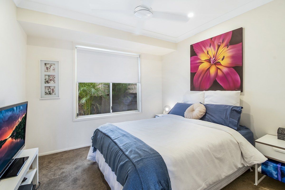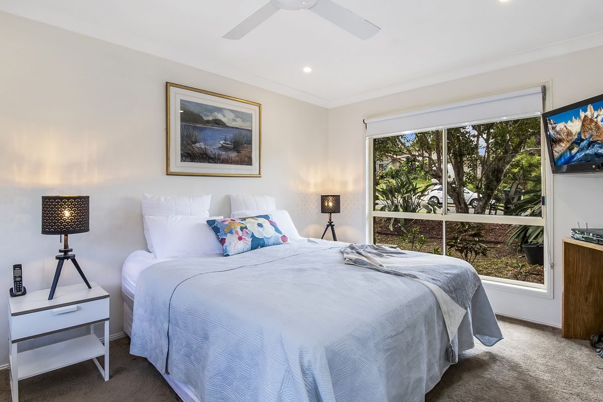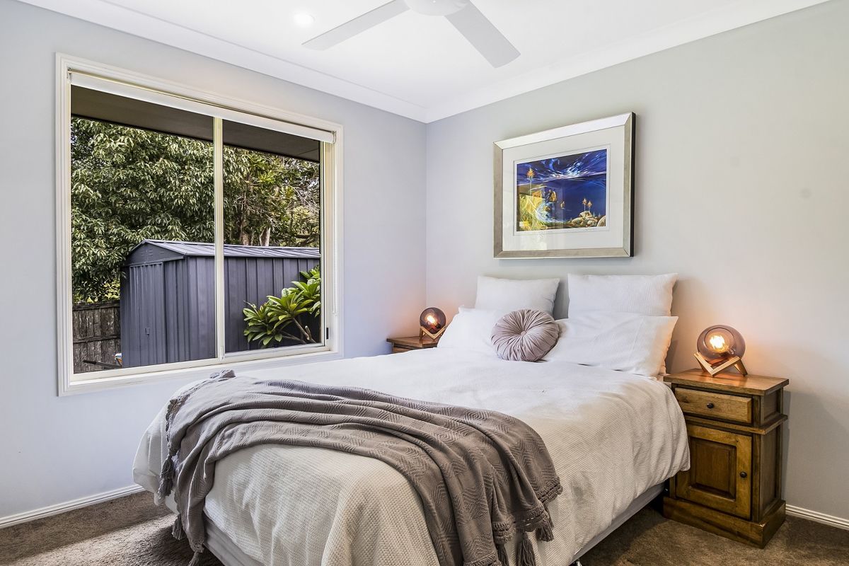 Bedrooms two and three overlook the green vista of Tallow Creek and surrounding bushlands, sharing a two-way bathroom with separate toilet, bath and shower.