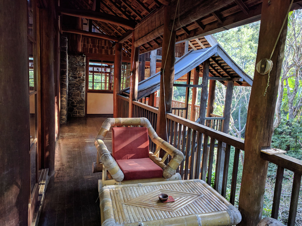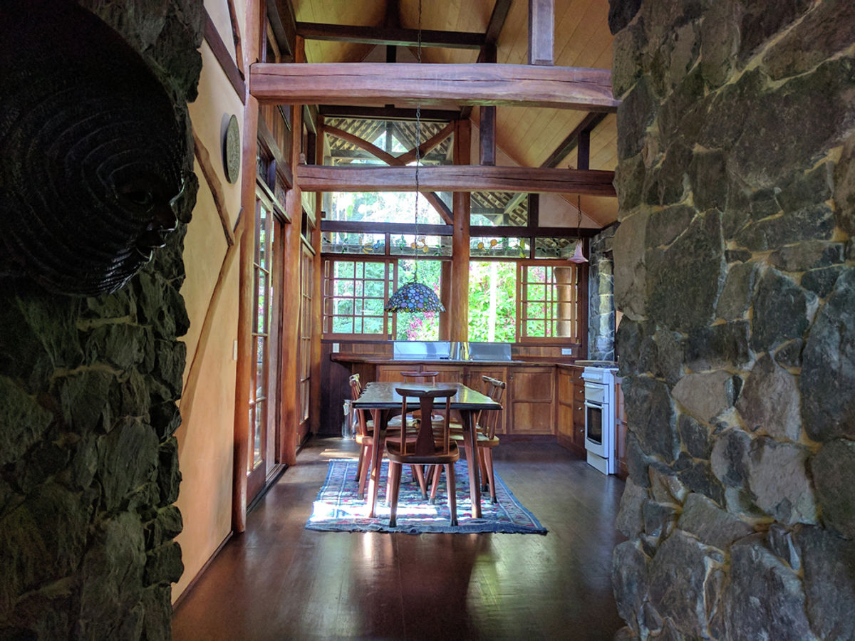 Two separate dwellings, with design elements from around the world, featuring elegant curved roofs, characteristic of Japanese and Korean temples, created by Japanese master craftsman.