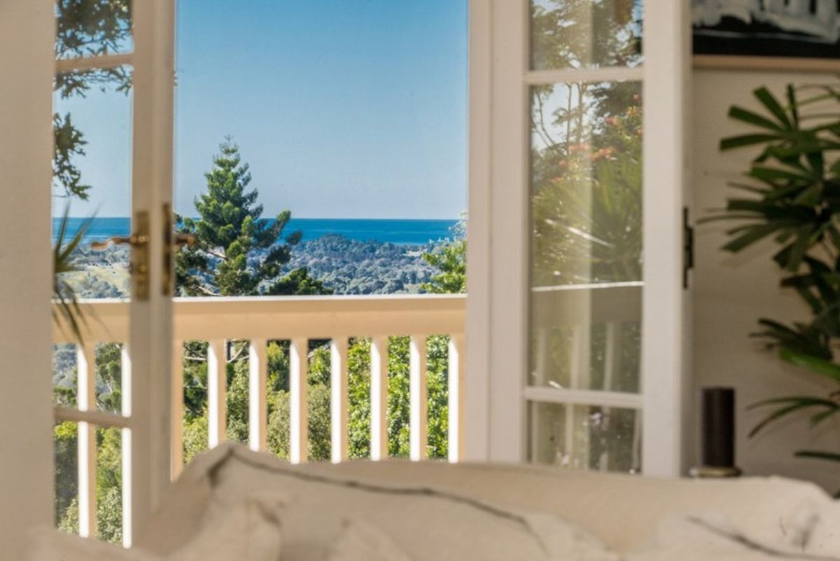 On the Upper level, you will find the large master suite, which has imported Italian Poliform walk in robes, French Cedar doors open onto the northeast facing balcony with glorious views of the ocean and the Myocum Valley. Relax and enjoy magnificent sunrises, as well as breathtaking full moons. The upper level of this spacious and elegant home features a fireplace, beautiful modern kitchen, dining and living areas which open onto the balcony.