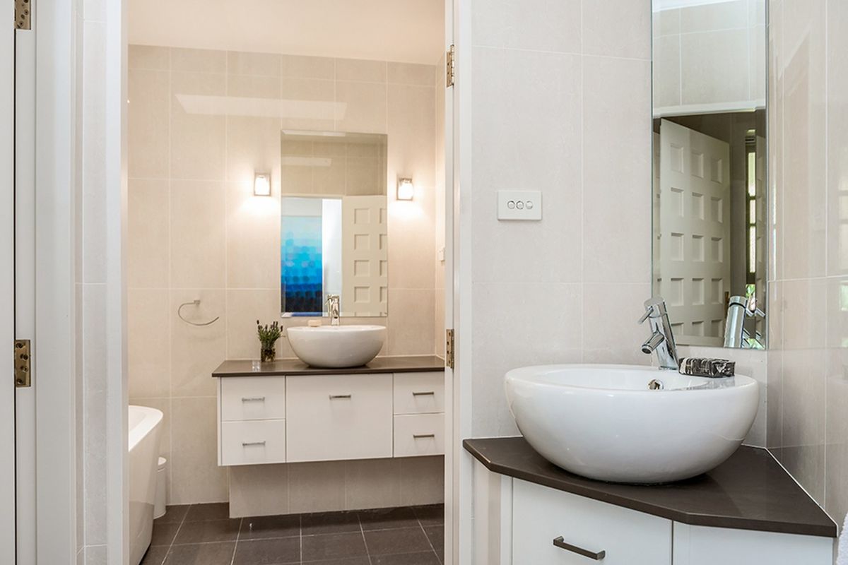 Entering through the large foyer of this open, flowing plantation style house, you are greeted with an impressive Victorian Ash staircase leading to the upper level. On this ground level, there are two private bedrooms, one with a WIR and a sumptuous bathroom with freestanding bath and Caesar stone bench top, it is an ideal guest suite or perfect for teenage kids.