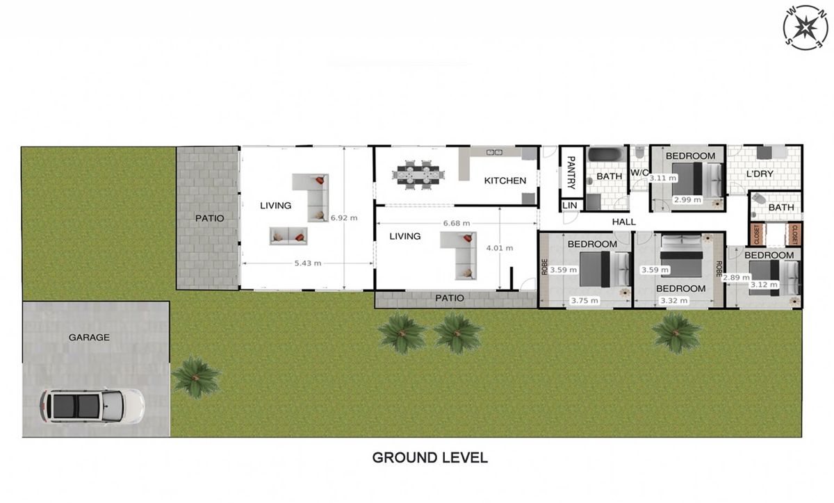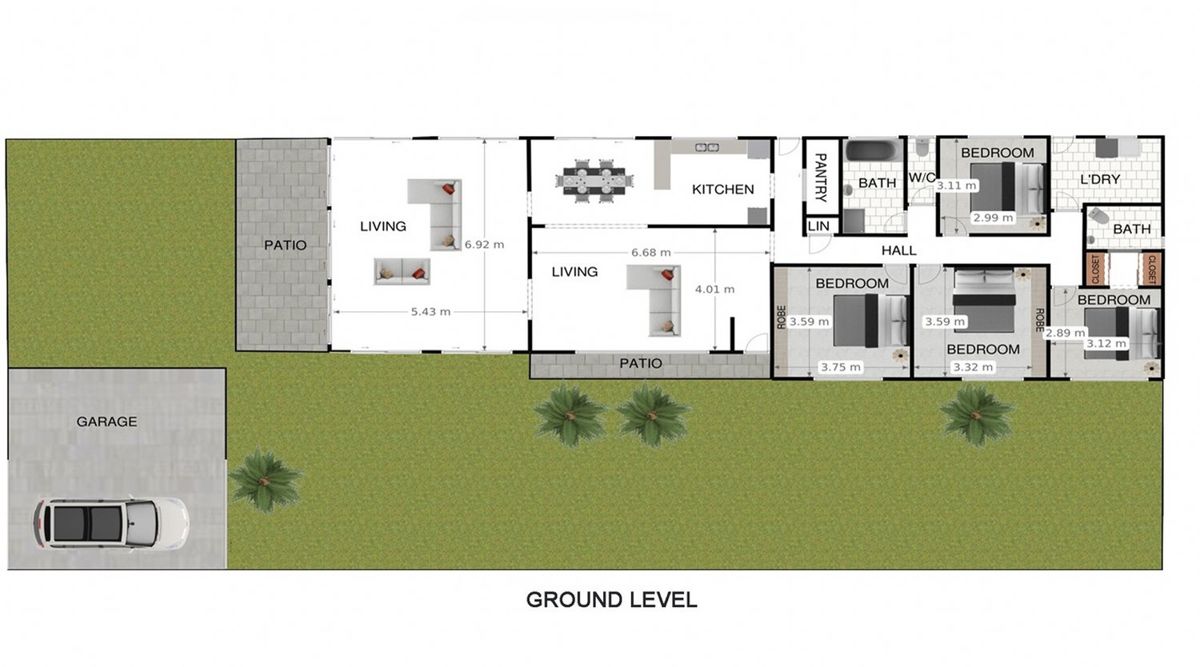There are two large living areas featuring high-raked ceilings and a front living room which open out to a covered patio through a big, glass window. The kitchen, with its gas cooking and adjacent dining room, make entertaining a breeze, and air conditioning helps to cool the house in the hot summer months. Relax and enjoy your breakfast or early morning yoga session on the sunny patio. With four bedrooms - two with built-in robes - two bathrooms and a master bedroom with a walk-through robe and ensuite, there is plenty of space and versatility to achieve whatever plans you have in store for this home.The home also features a large laundry with outside access and plenty of storage.