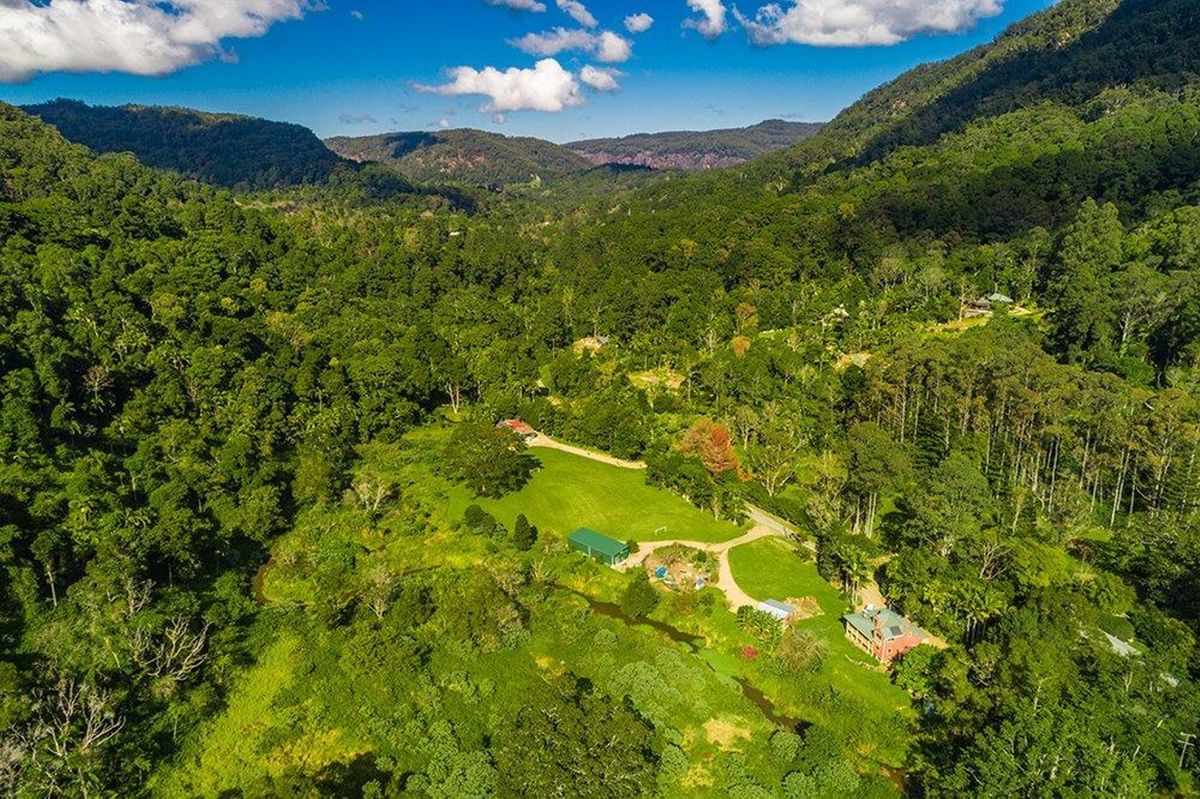 Perfect for those seeking privacy in a pristine area. "Coorumbena" is nestled in the sought after and desirable Byron Bay Hinterland. Set on 29.5 acres within a rich volcanic valley surrounded by 2 world heritage parks with magnificent waterfalls, "Coorumbena" is simply quite magical!