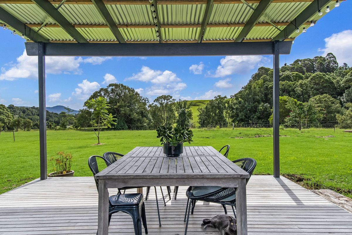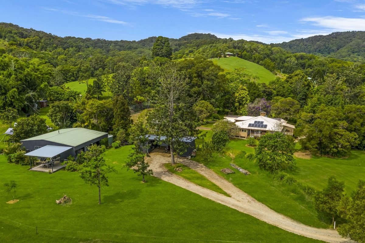 A long and inviting drive leads to the 100 year old charming 4 bedroom farmhouse, featuring decks/verandahs, outdoor entertaining, high ceilings, custom built kitchen with stone benchtops, dishwasher, water filtration with UV light, polished timber flooring throughout, wood fire and ceiling fans. A second private drive leads to the quirky 13 x 13 insulated artists retreat/studio, concrete flooring, with private timber deck overlooking the lush pastures. Sit back and enjoy the amazing sunsets from the deck of this fabulous artist's retreat/studio with Mount Warning as a backdrop...simply breathtaking.