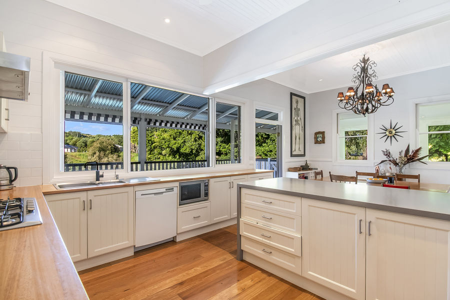 The property is located in a secluded country setting, while still just a short stroll to local shops and cafes.The two story home features three bedrooms, two bathrooms, large kitchen upstairs, with a separate rumpus/home office/ guest accommodation downstairs with its own entrance. A selection of indoor and outdoor living areas, large deck, Ozone salt water pool, double garage, fire pit, workshop, fruit trees, as well as town and tank water.