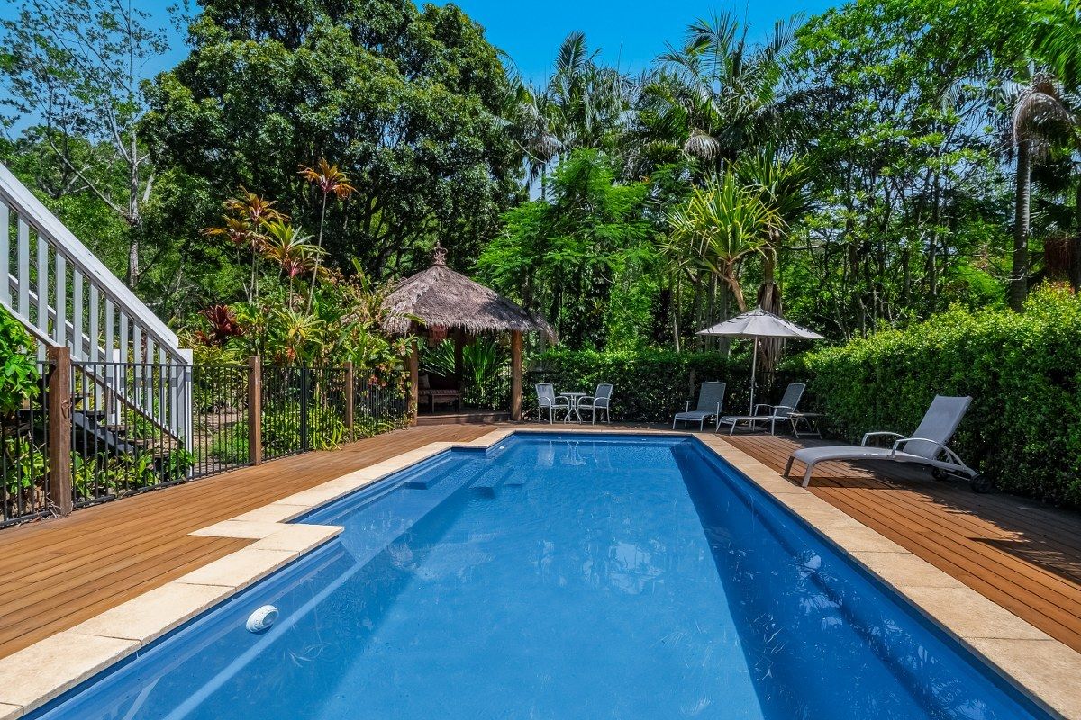 A sparkling, 10 metre in-ground pool with timber decking and a resort style cabana is the ideal place to entertain, or laze away summer days, while the studio/guest accommodation located a discreet distance from the main house is an added bonus.