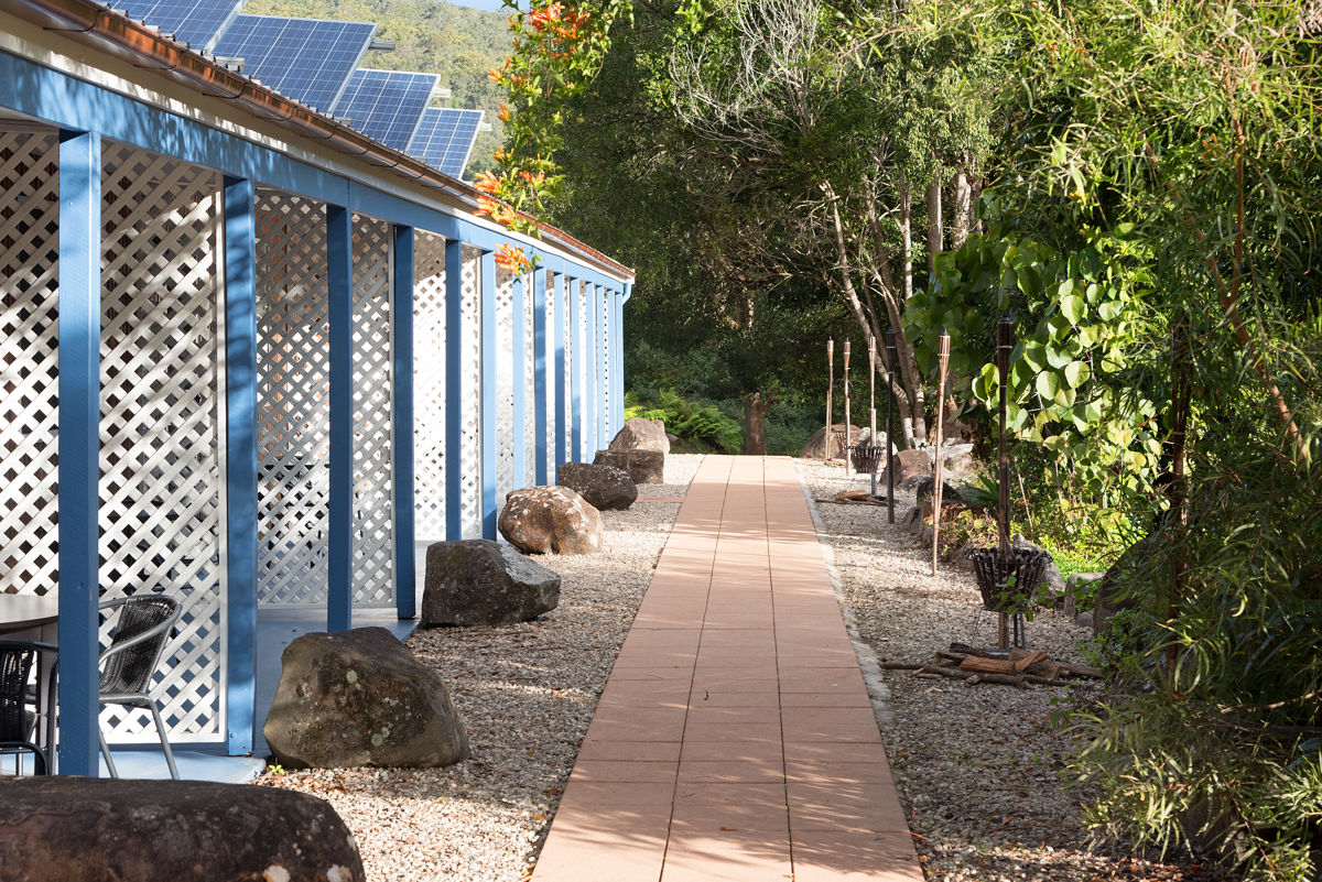 The property is home to a host of flora and fauna such as macadamia, bush lemon, guava, monstera deliciosa, frangipani, glo worms, echidnas, platypus and more.