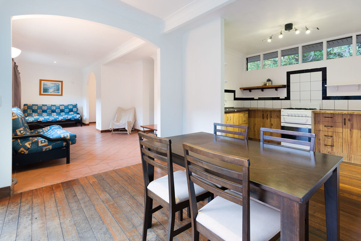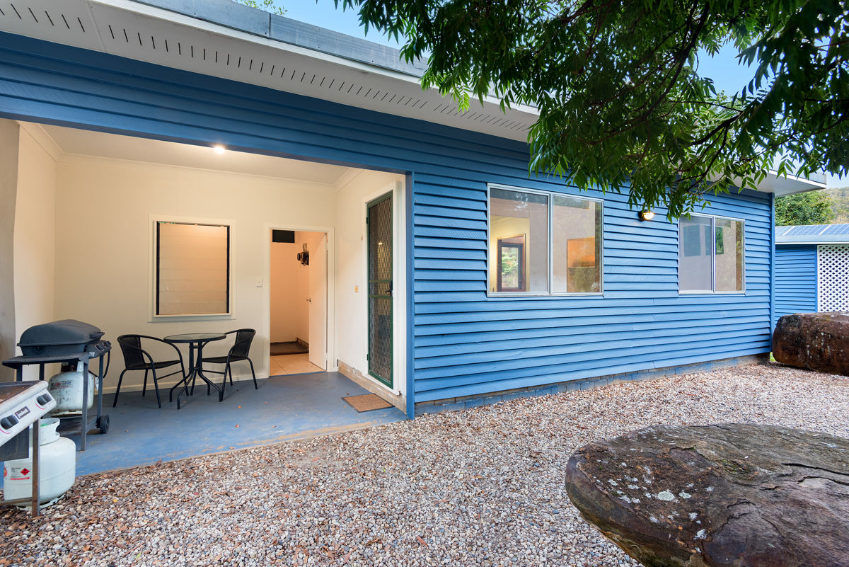 Built in 2006, the main home captures the surrounding serenity and beauty from its elevated position overlooking the property. The design of the home perfectly complements the natural surroundings, and features high ceilings, timber floors, and a variety of charming under cover entertaining areas. The timber galley kitchen leads to a large indoor/outdoor dining room.