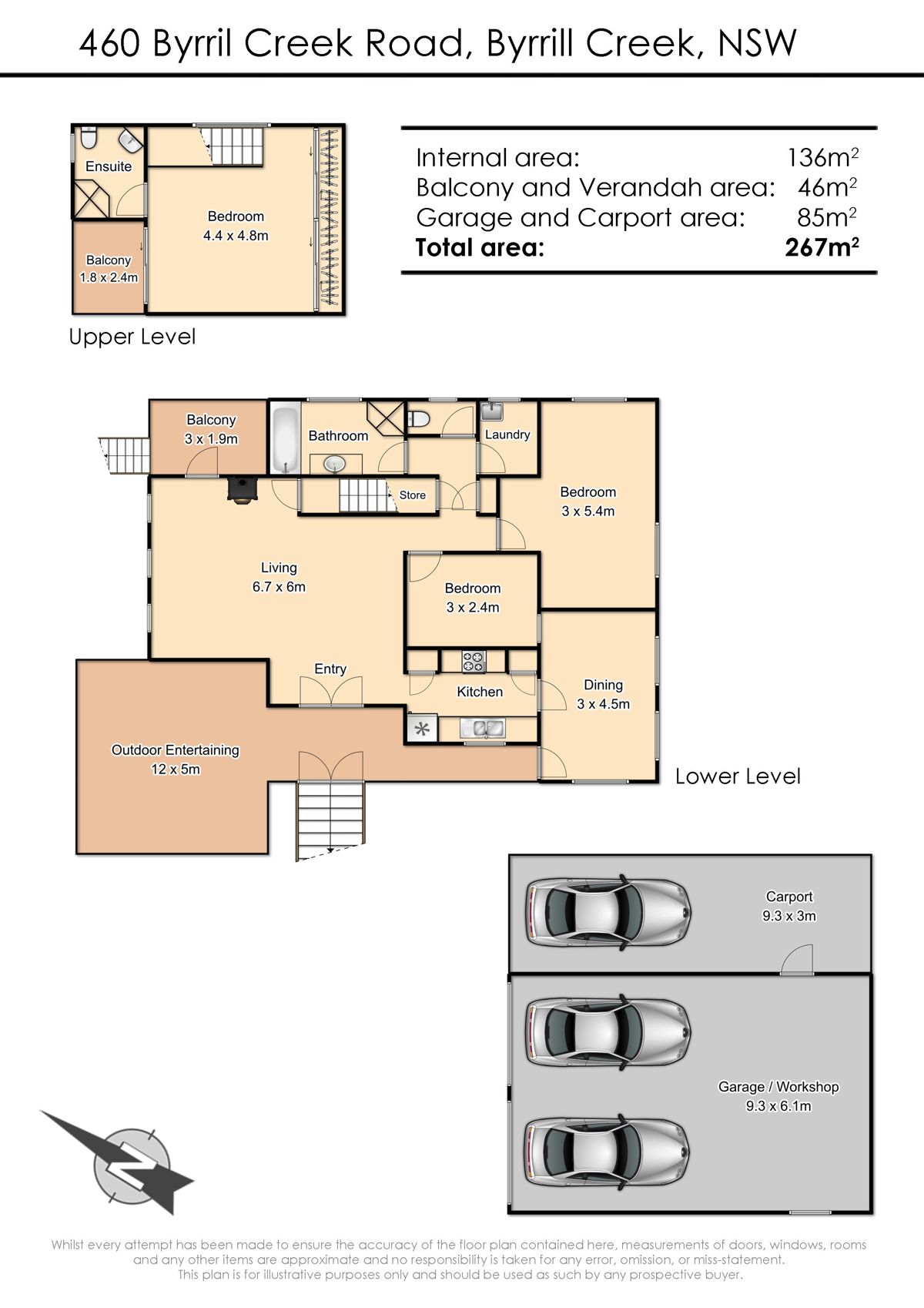 Directly adjacent to the home is a large two-bay colour bond garage with a four-car carport and workshop area.