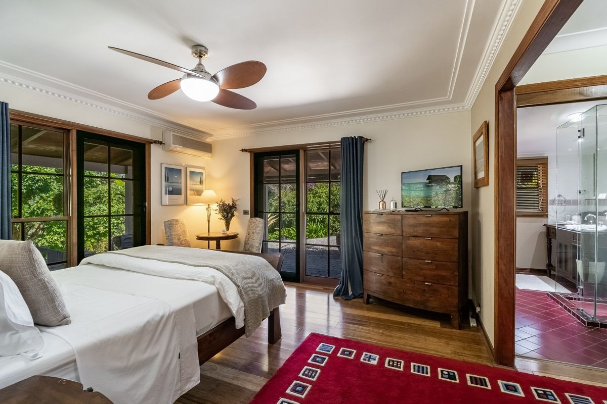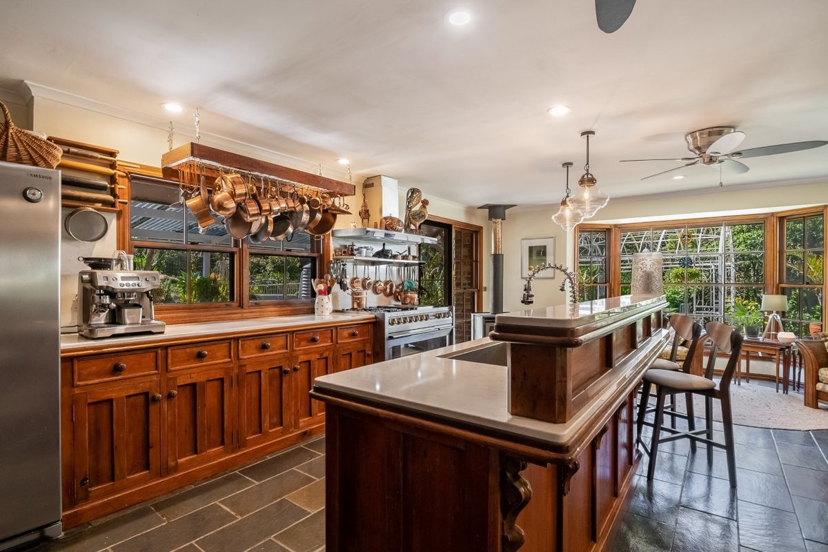 With five bedrooms and five bathrooms, the character-filled house features beautiful timber floors, high ceilings, a fireplace and grand covered verandahs. The kitchen is a gourmet's delight, with four ovens, six burners, plus a teppanyaki grill, you could keep the largest family happy, or a business booming.
