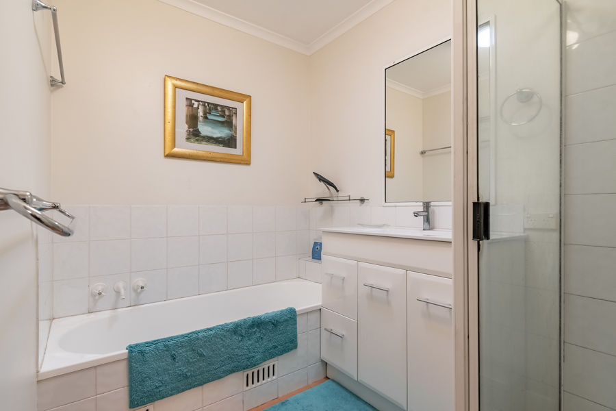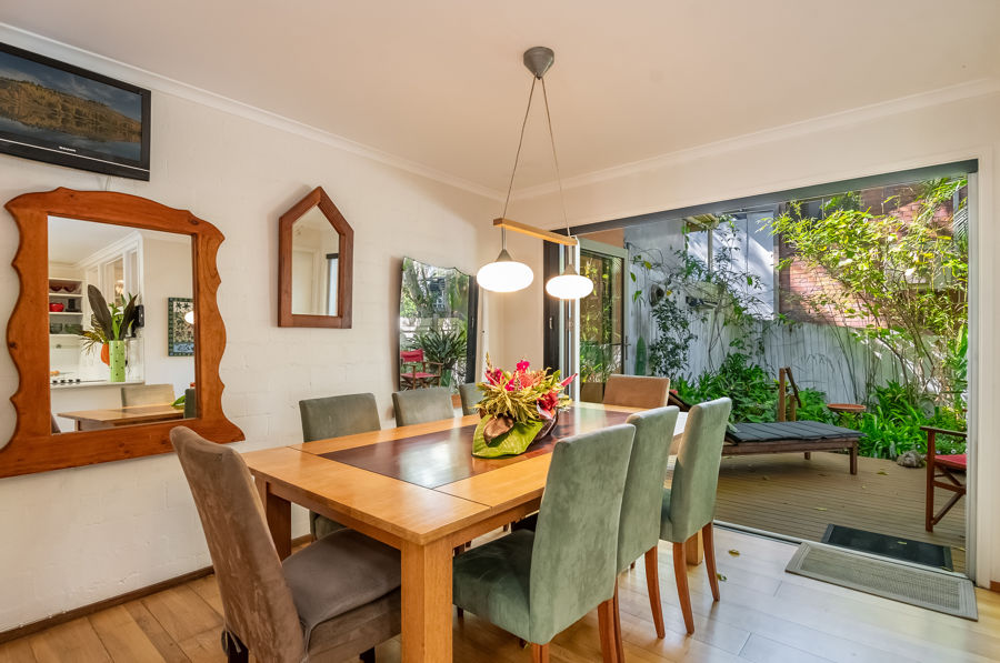 An intimate dining area flows onto a private southern courtyard with a large timber deck. The contemporary kitchen, which is light, airy and perfectly positioned between the dining room and living room is an entertainer's dream, with quality appliances and soft close draws.