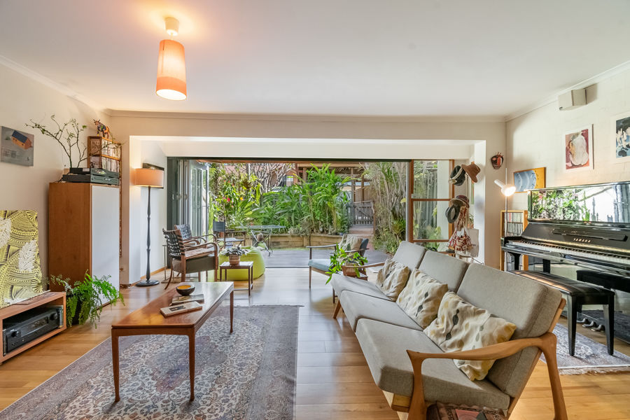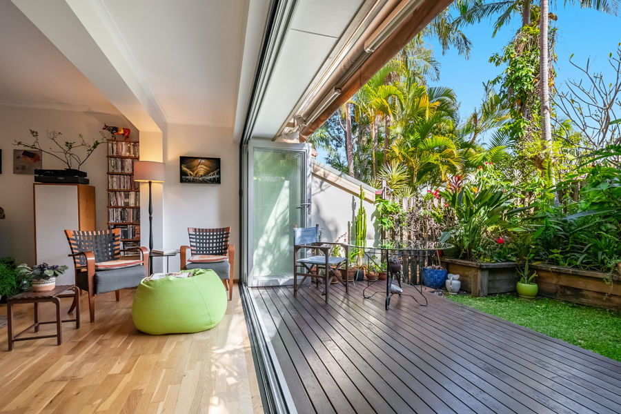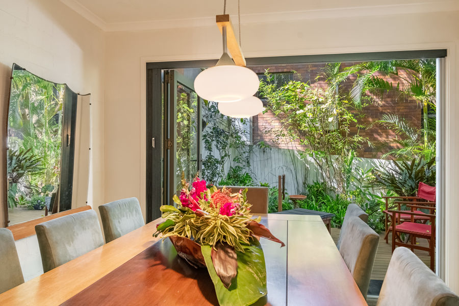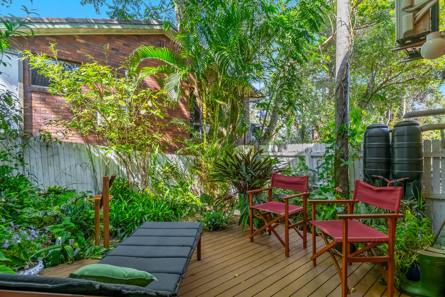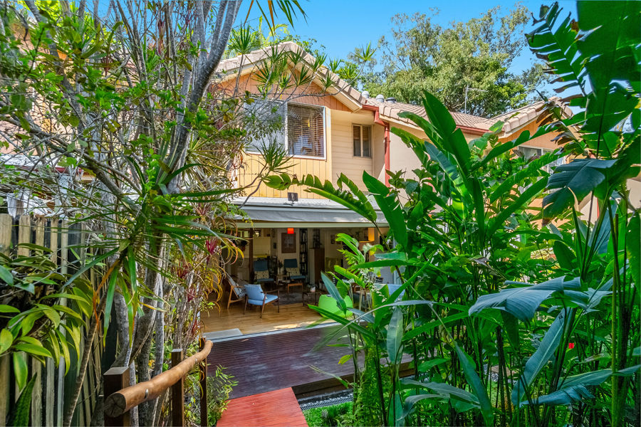 Entering the property, there is a relaxing and peaceful feeling. This home offers all the modern comforts, with a nature loving quality. The townhouse boasts a northerly aspect, with a variety of outdoor spaces, an outdoor shower, and a community garden where all residents are welcome to share the produce. There are beautiful, soothing cross breezes from the northern and southern gardens, and an abundance of wildlife including birds, frogs, water dragons and lizards.