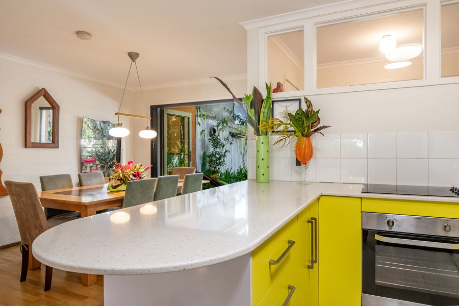This townhouse is strata title and features 1kW solar power and solar-powered hot water.