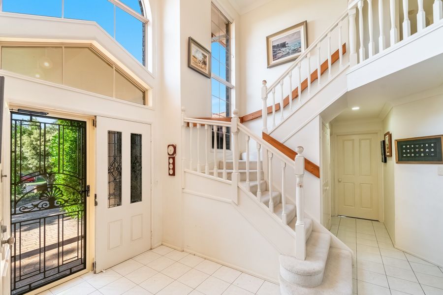 Downstairs features an impressive foyer leading to the open plan living dining area. The open plan kitchen overlooks a large meals area and family room. Also downstairs is a media room, study, pergola and patio, and covered entertaining area which flows to the inviting salt-water swimming pool.
