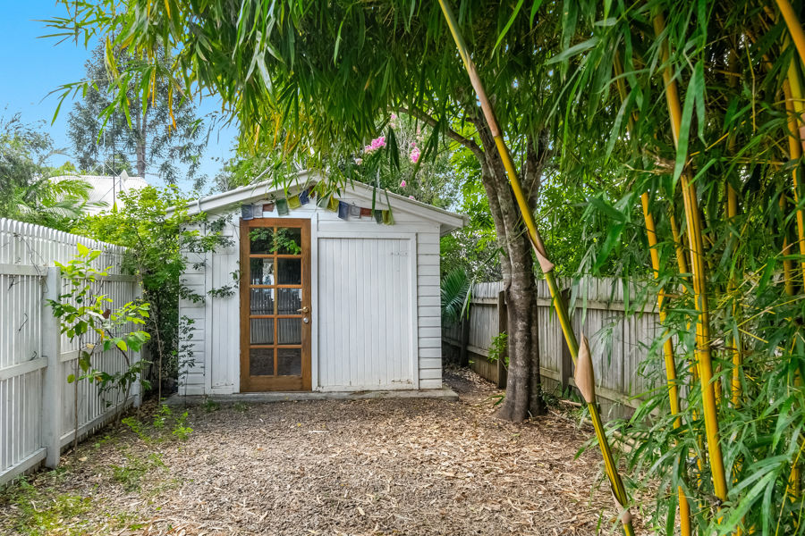 The duplex also boasts a separate, fenced studio that is plumbed, allowing the private studio space to be utilised for a variety of uses. The studio would be ideal for a home office, or as an idyllic artists' studio set amongst the pretty, established tropical garden, or as separate and private guest quarters.