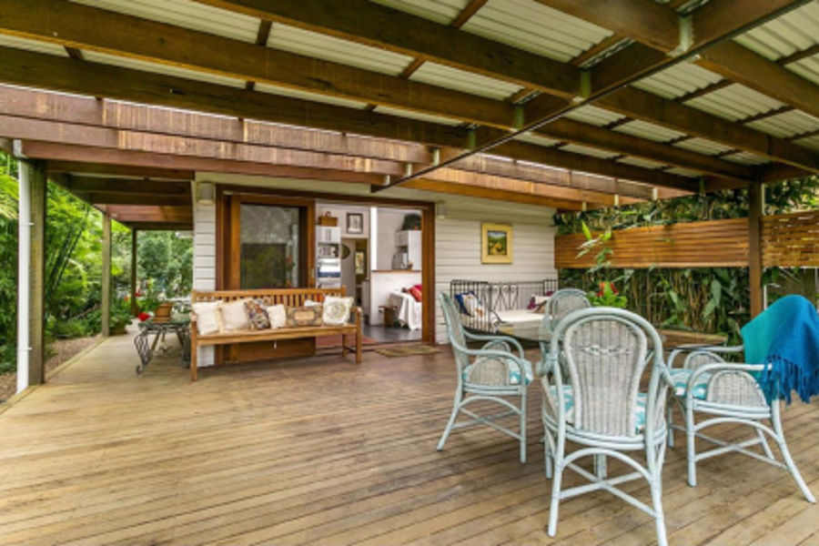With a large fenced back yard and established lush gardens, the cottage has a delightfully vast covered deck, that is entirely reminiscent of Mullumbimby in its relaxed, subtropical ambience and charm.