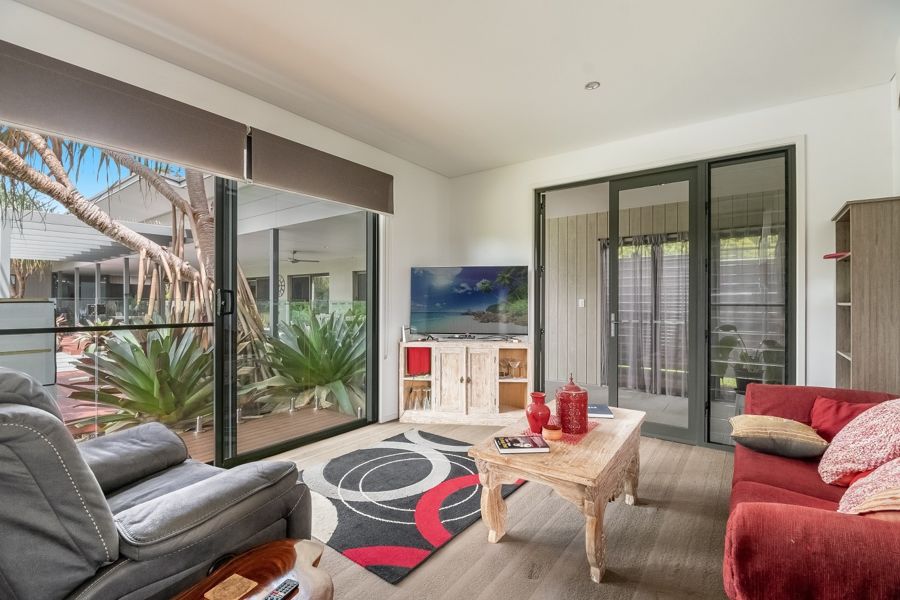 This dual entrance property is conveniently located an easy 10-15 minutes to the local surfing beaches, and the cafes, boutique shops, from Newrybar, Bangalow, Ballina, Lennox Head to the glamorous hub of Byron Bay. Byron-Ballina Airport is a 15-minute drive and Coolangatta International Airport is a 50-minute drive from the home.