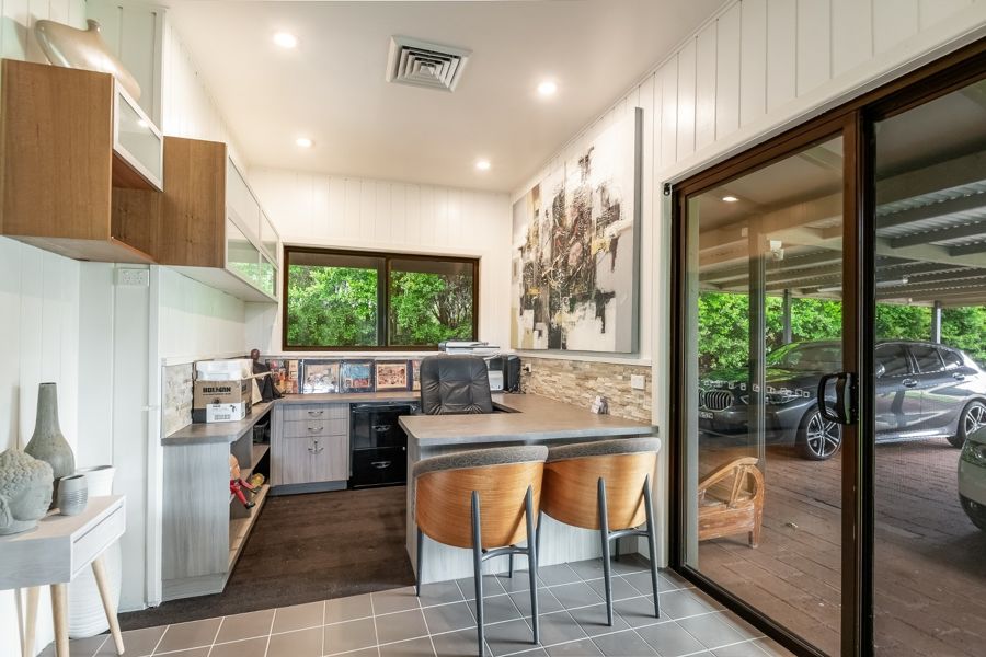 To complete the ultimate in lifestyle indulgences, there is an 8-car insulated garage, 4 of which are perfect for the car enthusiast or handyman. The remaining 4 have been converted into a Billiard/Games room equipped with benches, storage cupboards, a sink, plus mezzanine.