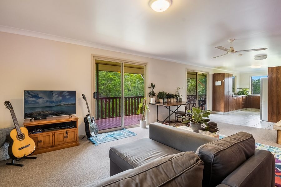 With two (approved) houses on the property, each with private sealed driveways, the main residence was built in 1984 and designed by an award winning, Byron Bay Architect. With 3 bedrooms and 1 bathroom the contemporary, open plan residence was designed to capitalise on its scenic setting.