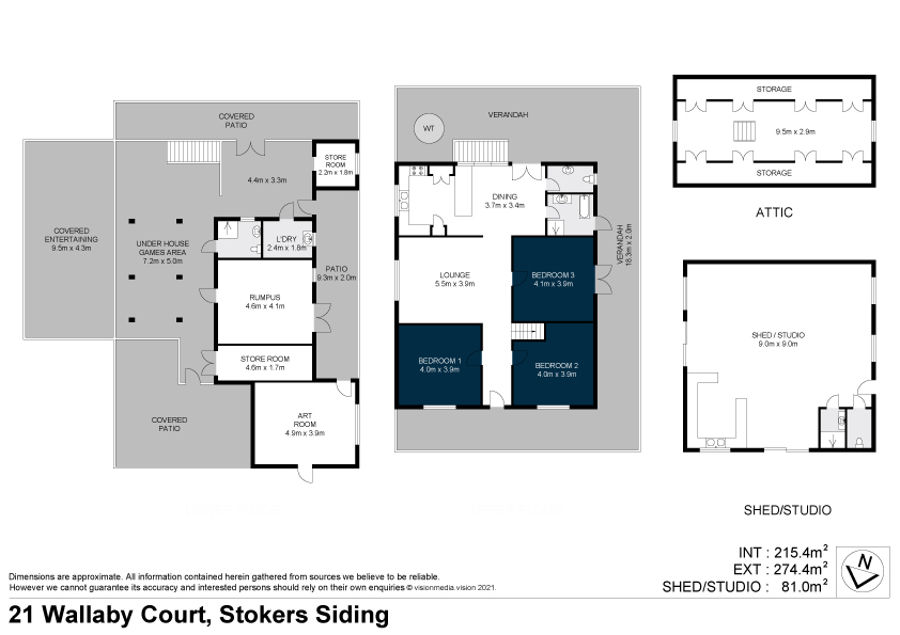 Upstairs, there are three bedrooms, and attic, ideal for guest room, childrens playroom, or that extra storage much needed for documents, suit cases and Christmas decorations. In addition, downstairs provides a separate rumpus room and art room ideal for the hobby enthusiast or home office, in addition a shower and toilet and storeroom are a welcome addition.