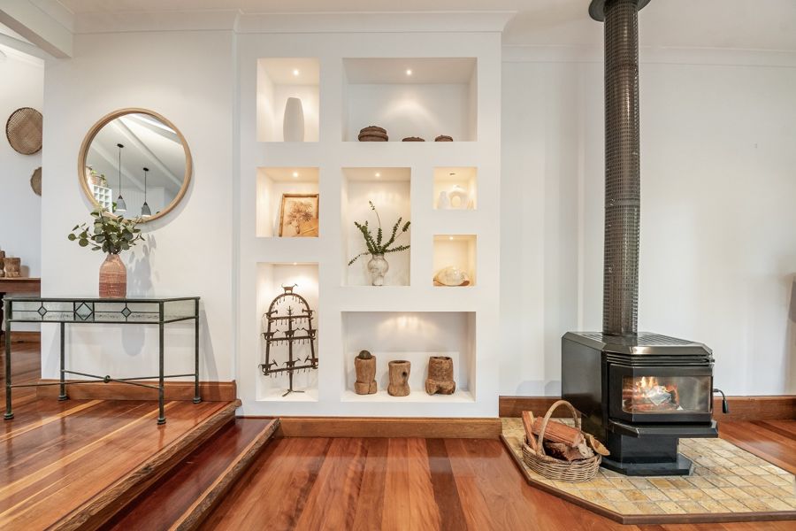 • The showstopping 'Grand Room'-a sun-drenched living space-boasts soaring ceilings, a slow-combustion heater for cosy winters, and doors opening onto expansive decks that invite alfresco entertaining year-round
