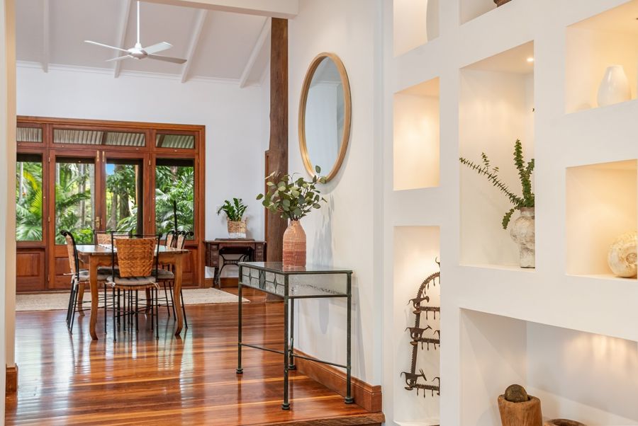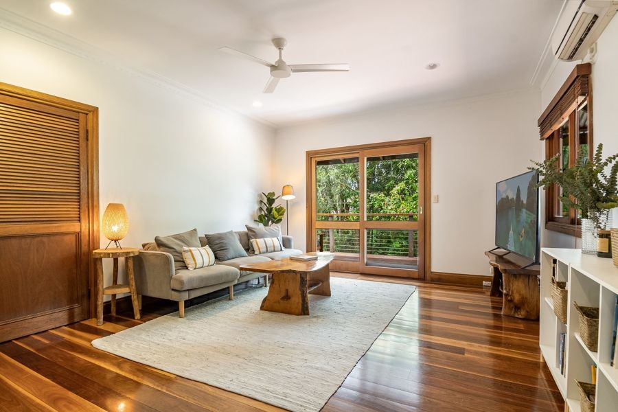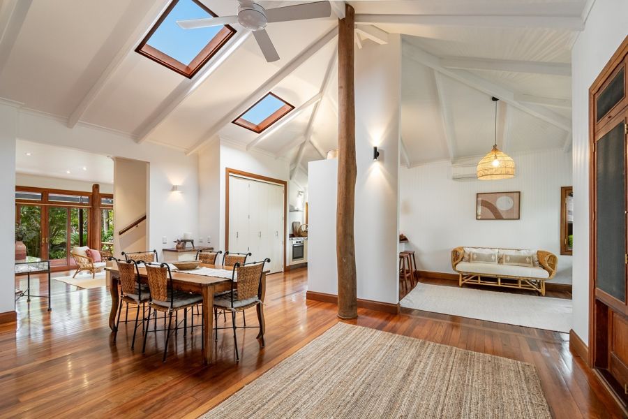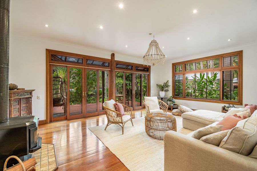 Framed by breathtaking views of Mount Chincogan, the expansive 5-bedroom, 3-bathroom residence welcomes you with double entry doors, rich timber flooring, and an effortless connection to the outdoors. Light pours in through handcrafted picture windows, bringing the lush subtropical surrounds inside.
