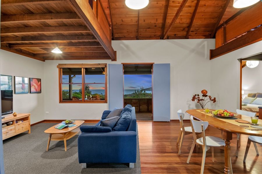 A dream for nature watchers, there is a huge range of birds in the surrounding bushland, families of kangaroos who often visit to feed on the grass close to the house and migrating whales which can be seen from the veranda.