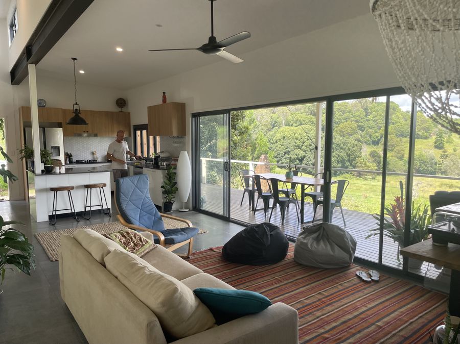 The Jewel - a stunning main residence with sleek, modern design that seamlessly blends luxury and function. With 4 bedrooms and 4 bathrooms, this spacious home is perfect for large families or hosting guests. The split-wing layout with dual entrances ensures privacy and flexibility, while polished concrete floors and expansive glass panels invite the outdoors in, making the surrounding nature a key feature of the home's beauty.