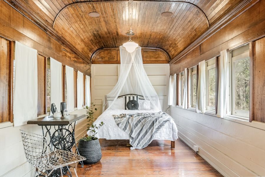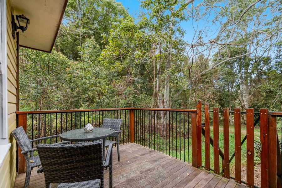 A very special and charming feature of this property is the handcrafted and lovingly restored, 120-year-old, former dining carriage of a grand old train. This stunning space offers quality finishes including the use of timbers such as Teak, Silky Oak and American Oak. Perfect for a variety of uses - guest accommodation, yoga, artist's studio or gym - the carriage is complimented by a modern day adjoining self contained area, all in keeping with the bespoke, bygone-era charm, with hardwood floors, gas cooking and a delightful balcony that captures the morning sun and overlooks the creek's swimming hole.