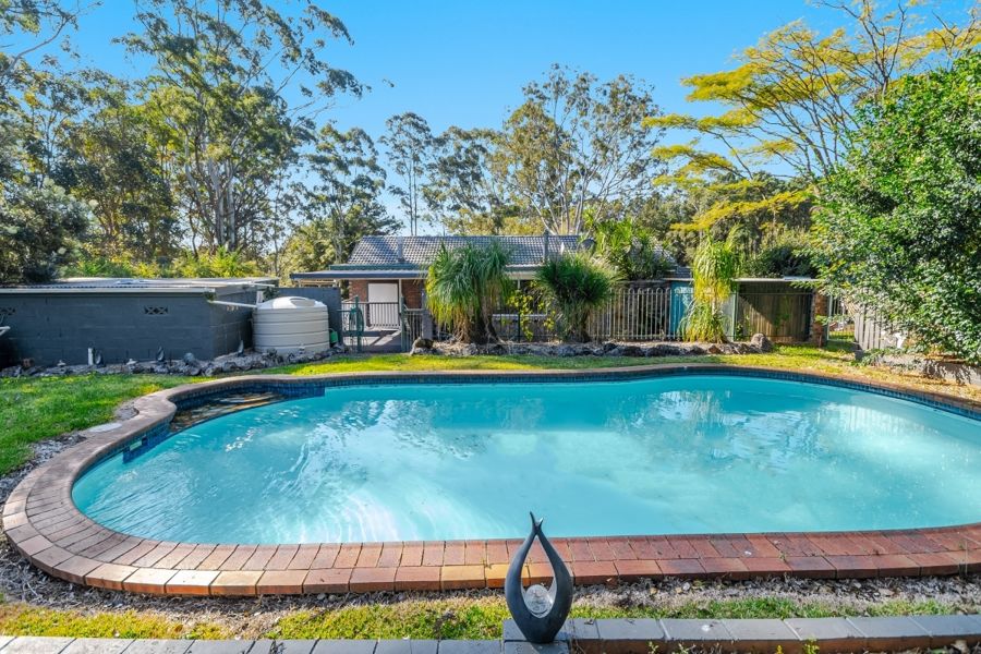 Located mid way between the diverse city of Lismore and the quaint village of Alstonville lies this private 2.02 Hectares (approx 5 acres) north facing, perfect aspect. The tree lined driveway will make you smile every time you arrive home takes you to the home at the rear of the property. An inground pool beside the home ensures hours of fun for the young and young at heart. A covered alfresco area looks across the pool. The modern style kitchen has adjoining feeding to the open plan lounge/family room with gabled ceilings. The spacious master bedroom upstairs with the remainder bedroom downstairs including a renovated bathroom.