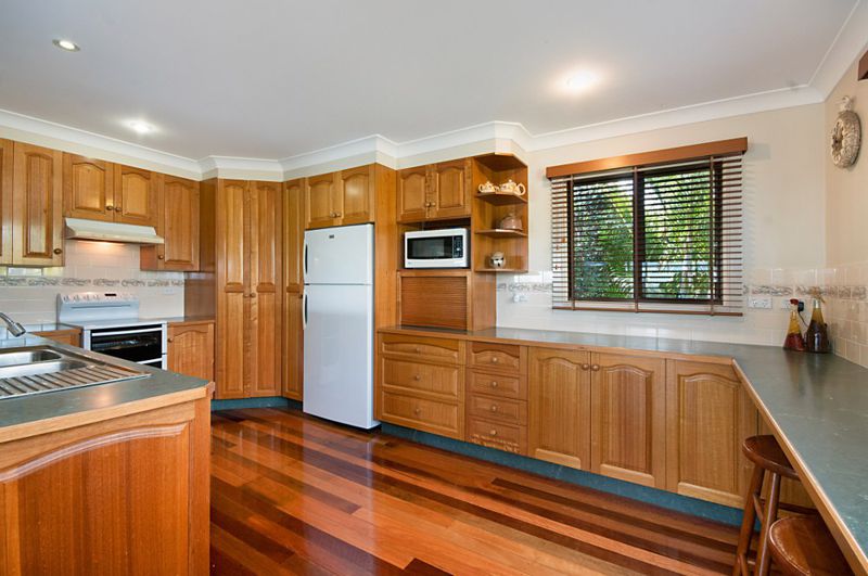 The yard is fully fenced with established gardens and trees providing shade and privacy. The owners maintain the river front reserve in front and enjoy the river access for their water-craft.