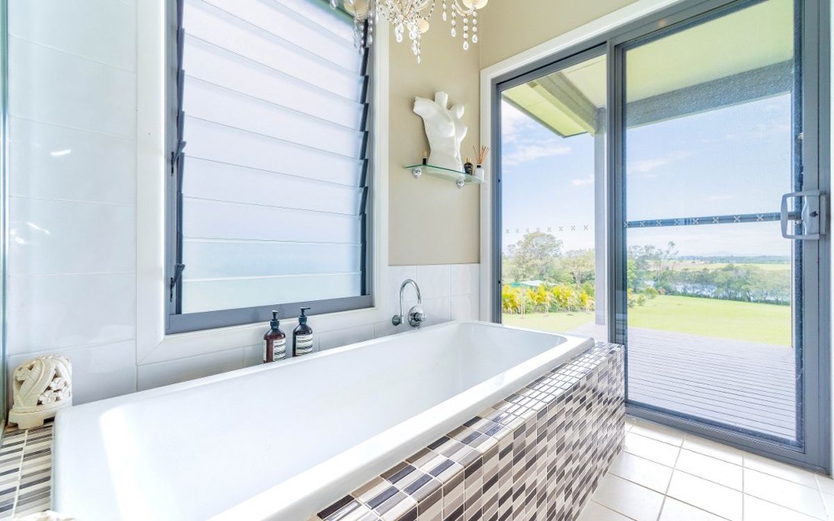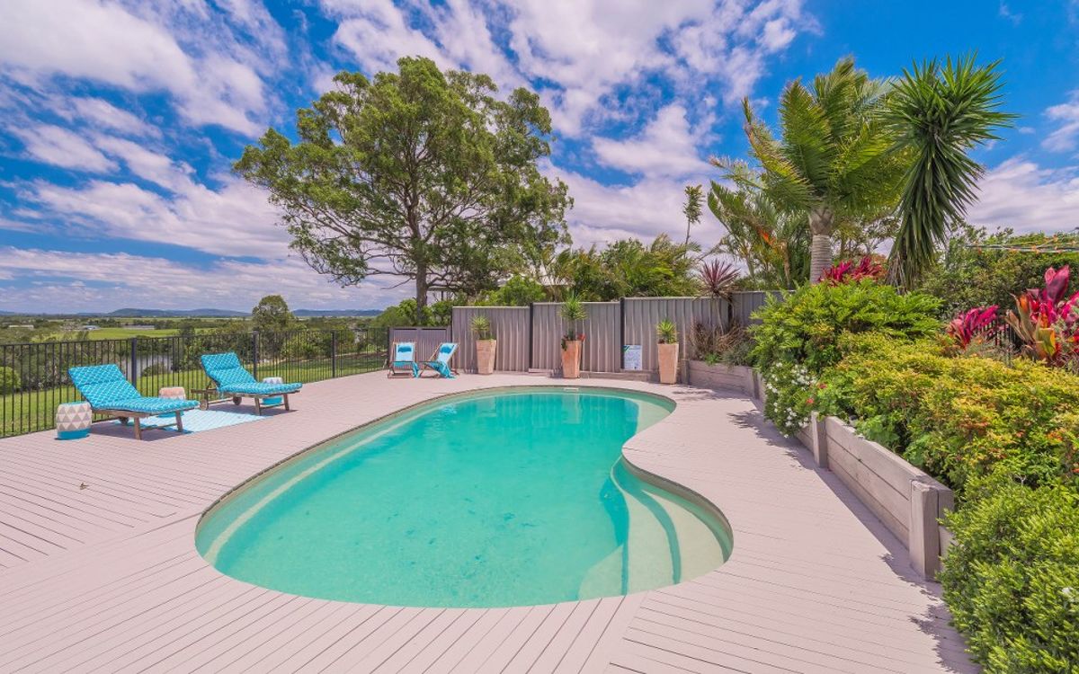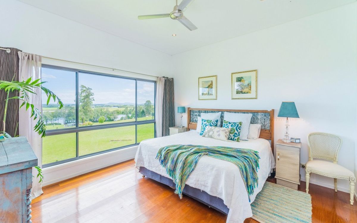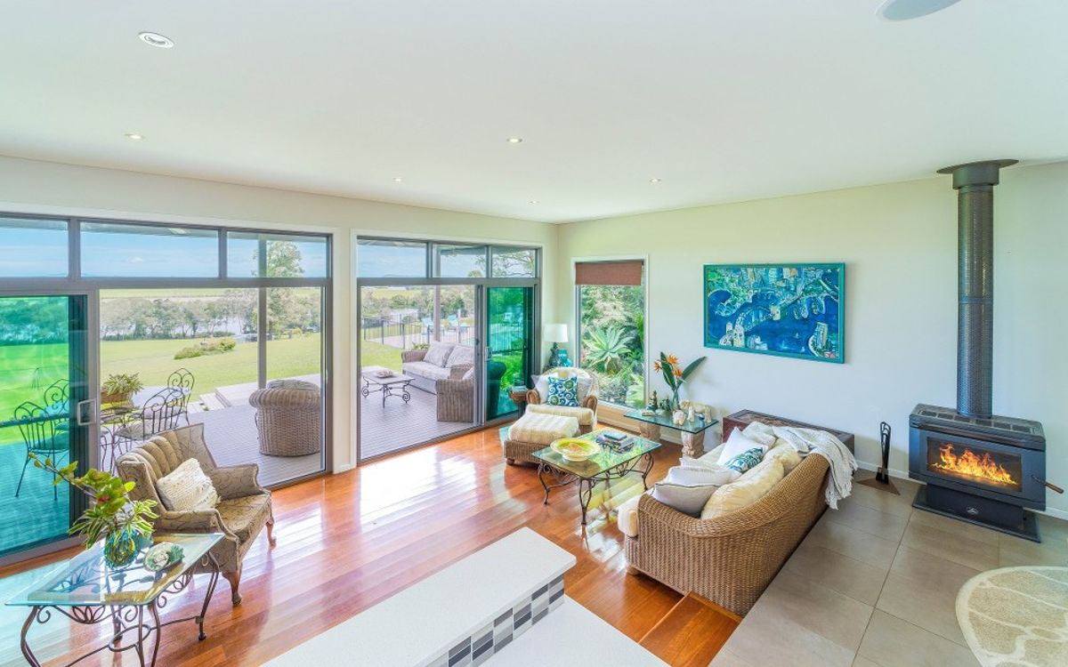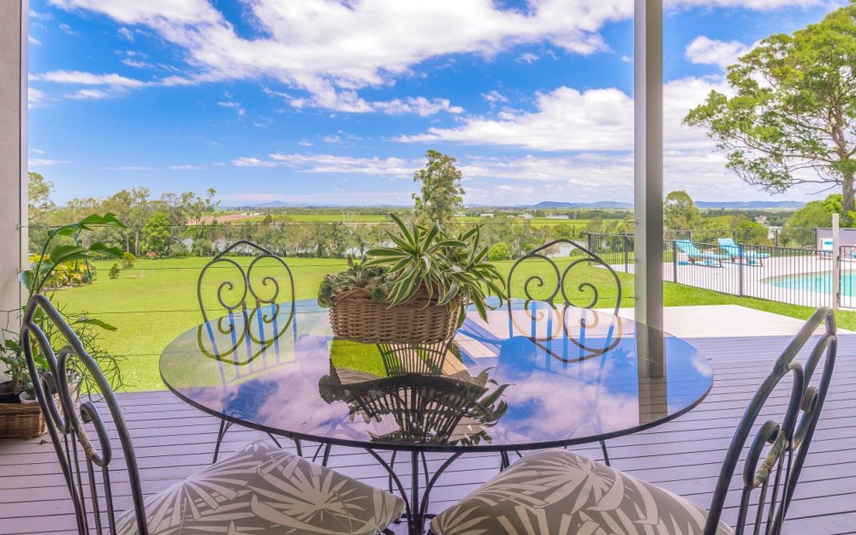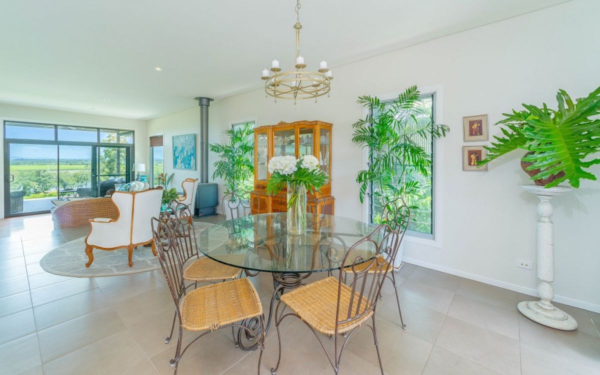 The modern residence is nestled on a gentle slope that captures panoramic views over the Clarence River, to Yamba, its islands and the mountains beyond. Situated on 3.6 acres of manicured lawns with extensively landscaped areas not only to enjoy the outside no matter the weather but also provide the utmost privacy.