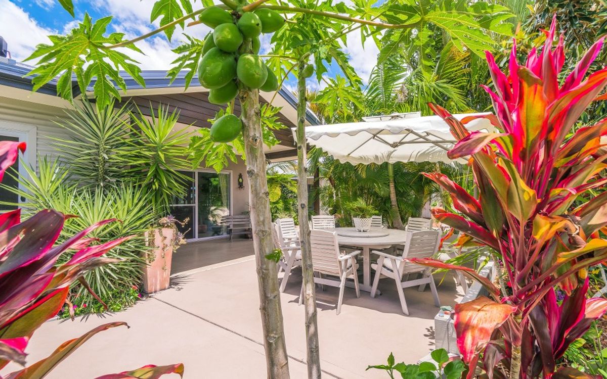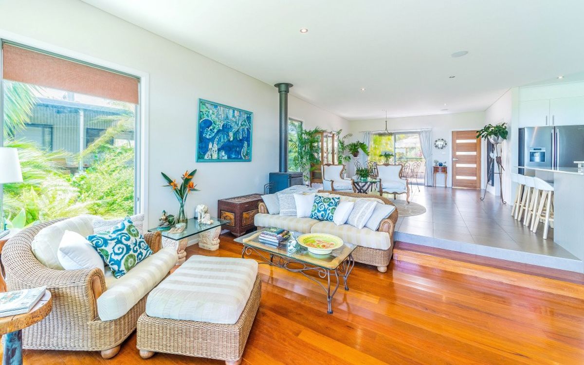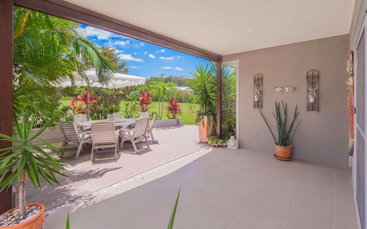 Designed with a coastal feel this home has captured the essence of inside/outside living at its best with extra high ceilings, large 3 fold sliding glass doors to a wide covered deck overlooking the river and several entertaining areas featuring either solid hardwood or large tiles. A key feature of the home is the split level open living with a designer kitchen featuring stone benches, light filled living dining spaces and every room providing a view either of the river, mountains or the extensive tropical gardens.
