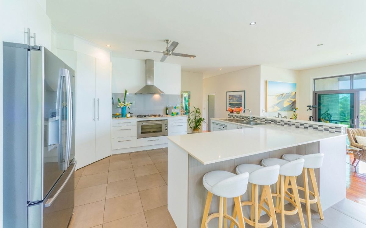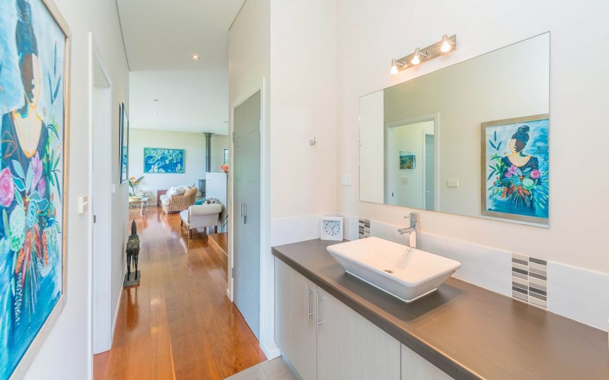 The generous master suite comprises 12ft ceilings, a walk-in robe, full bathroom complete with a bath and a private deck overlooking the amazing views. There are 2 other bedrooms, one king size and a queen both with plenty of built in storage, garden outlook and set in a guest area with a tv room and generous guest bathroom.
