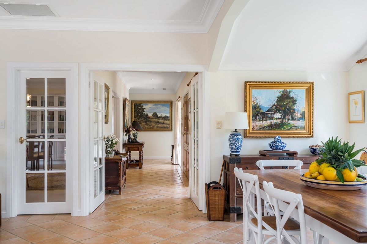 Manicured lawns and elegant gardens extend throughout the property, which features a shimmering, 12m x 4m saltwater swimming pool, and Rebound Ace all-weather tennis court,