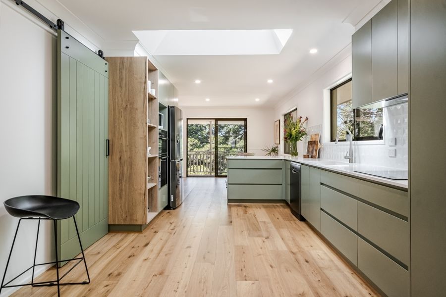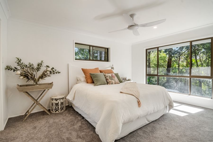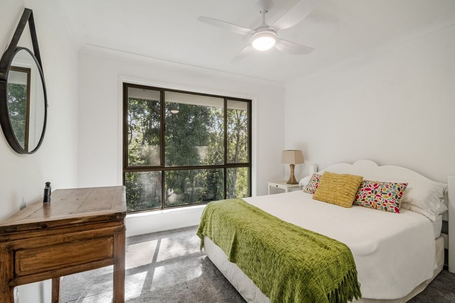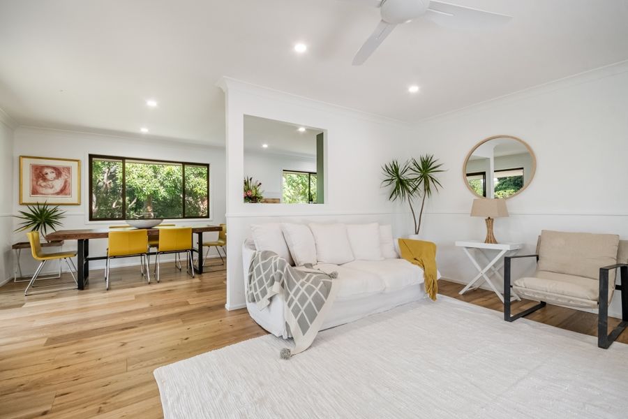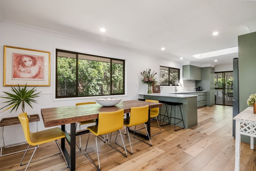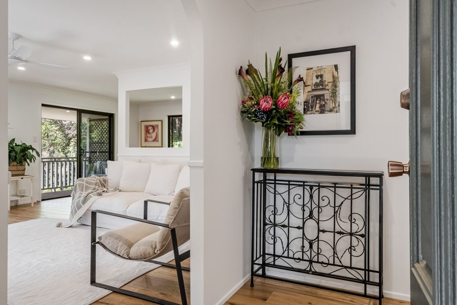 This stunning, recently refurbished home is the epitome of modern luxury. The elevated 3 bedroom, 2 bathroom home offers open plan living, featuring a chef's kitchen with stone bench tops and modern appliances including an induction cooktop and one and a half wall oven. The walk-in pantry offers ample storage space with the open plan living and kitchen conveniently opening to the covered verandahs and decks, creating a seamless indoor-outdoor living experience. Natural light abounds with carefully designed skylights throughout. The verandahs provide breathtaking views of the surrounding landscape, making it the perfect place to relax and entertain. Perched elegantly on a hill, (with no flood risk), the ideal north-east aspect invites abundant sunshine and always catches the gentle breeze.